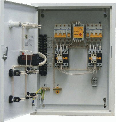 Устройство предназначено для бесперебойного снабжения цепей освещения и силового электрооборудования от двух независимых источников питания с помощью автоматического переключения контакторов с одной питающей линии на другую при исчезновении напряжения питания в сетях однофазного и трёхфазного переменного тока напряжением 220 или 380В частотой 50Гц. Устройство АВР серии ЯА8300 выполняется в металлическом ящике (боксе).