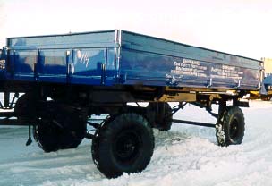 Модель 887Б, с металлическими основными бортами. Самосвальный - разгрузка на 3 стороны, предназначен для перевозки различных грузов. Из 2 прицепов составляется тракторный поезд. Опрокидывающий механизм - гидравлический, с приводом от гидросистемы трактора. Масса перевозимого груза - 4000 кг. Габаритные размеры (мм): длина - 6233, ширина - 2453, высота - 1800. Максимальная скорость передвижения - 40 км/час.